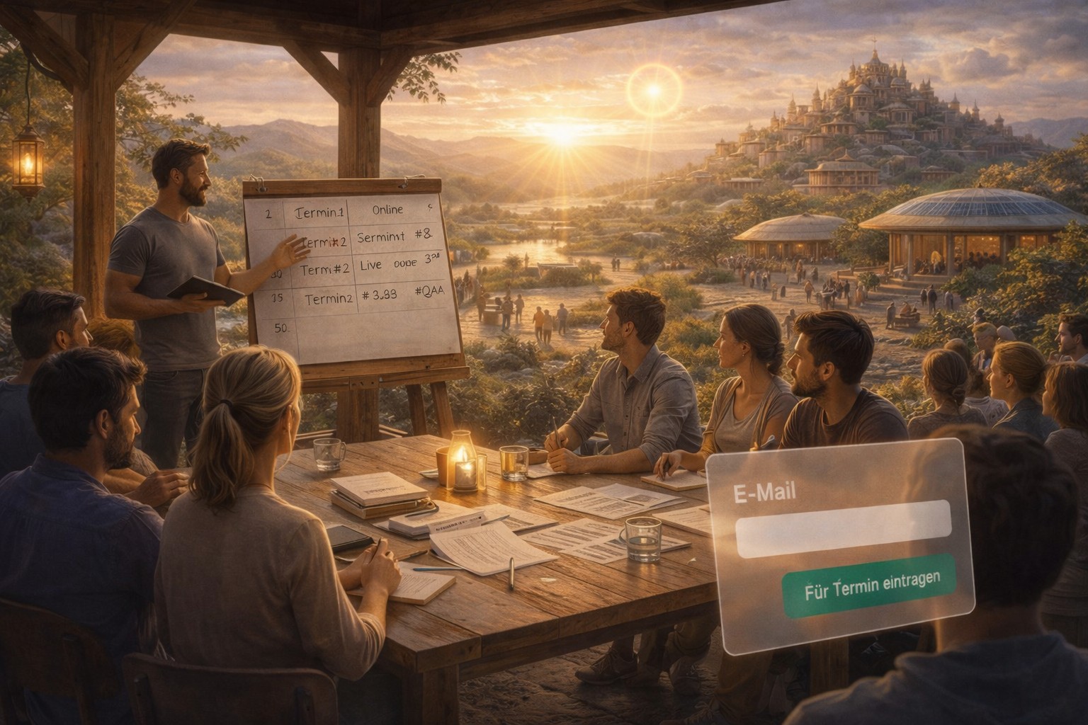 Hier erscheinen nach und nach Termine, an denen du teilnehmen kannst, um in einem kuratierten Umfeld in THE FIELD und im INNER CIRCLE die Neue Welt mitzugestalten. Um up-to-date zu bleiben laden wir dich ein, dich in unseren Newsletter einzutragen.